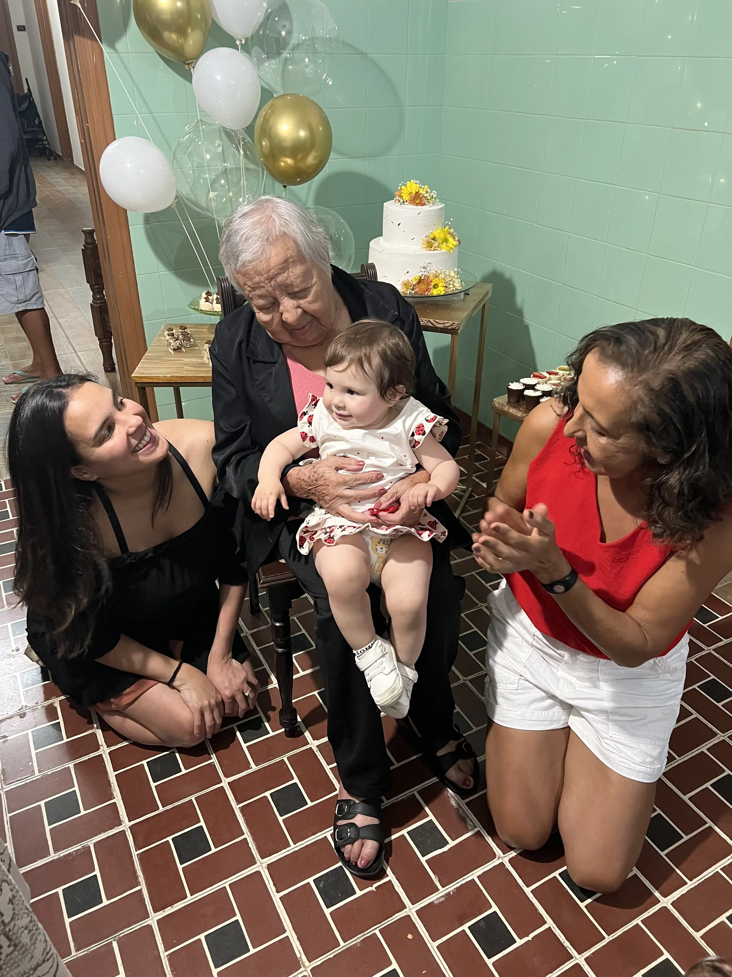 Que grande honra ter sido a sua neta nesta vida. Que grande honra te dar bisnetas. Julia e Laurq vão ouvir histórias a seu respeito vovó. Elas vão saber da infância feliz que tive todas as vezes que estive com você. Gratidão vovó por ser a melhor vó. Gratidão por que eu sei que você esteve ao lado da minha mãe durante o nascimento dos meus irmãos e meu nascimento. Você veio vovó, você saiu da sua casa em Caraí e foi para a casa da minha mãe dar rede de apoio por meses. Essa tradição segue Vovó. A minha mãe veio do Brasil aos Estados Unidos para ficar comigo, viu a Julia nascer, cuidou da Ju, cuidou de mim, cuidou da casa. Como você. E hoje mais uma vez minha mãe está aqui de novo seguindo com a missão de dar pra mim, o mesmo que você deu a ela. A Laura chegou semana passada, e ela está aqui pra cuidar da gente. Como você. Obrigada vovó. Eu prometo que eu continuarei com essa tradição se Deus quiser para estar aqui para as filhas ou filhos de minhas filhas.